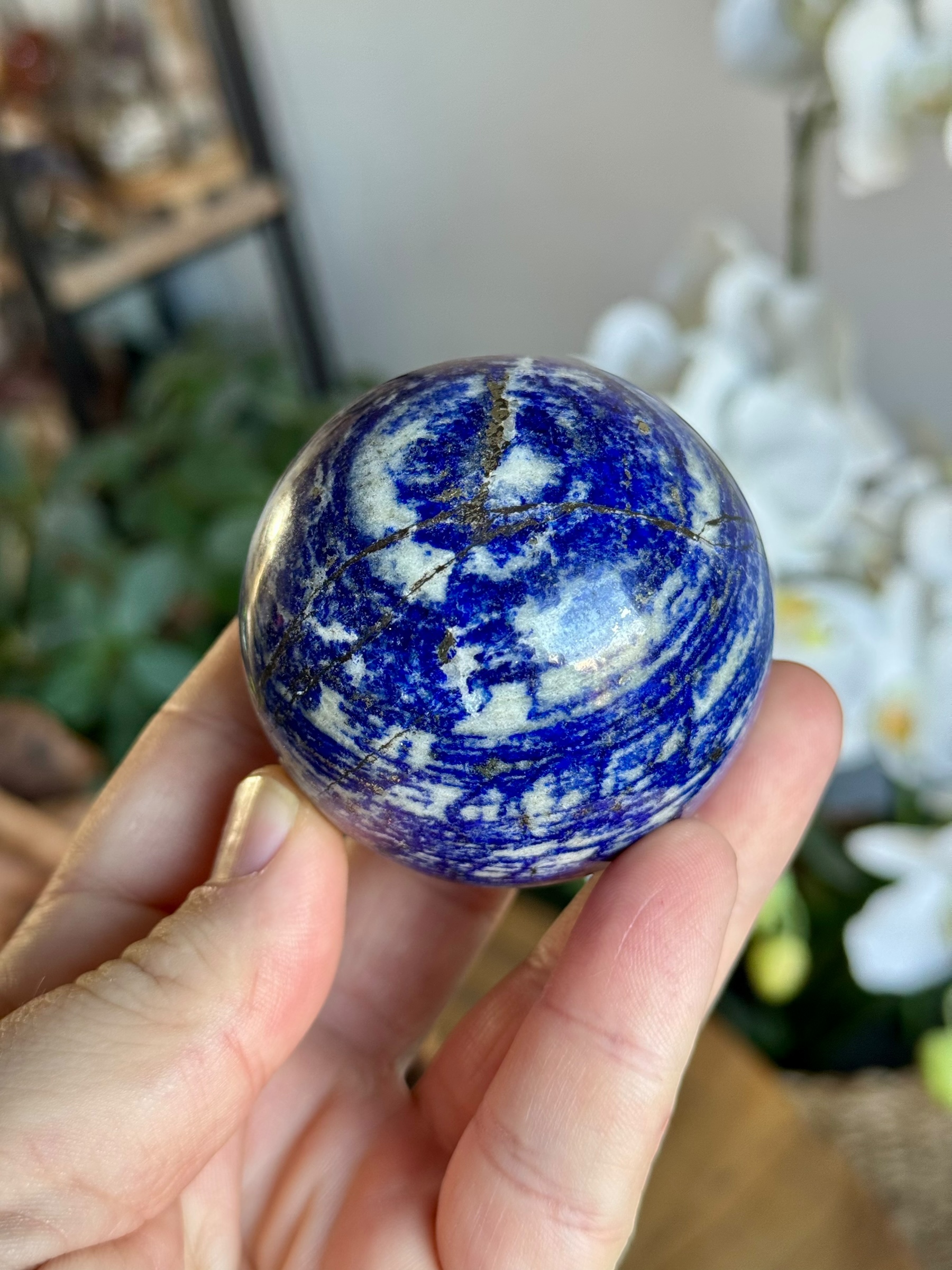 Afghaniet wordt vaak geprezen om zijn energetische eigenschappen, die kunnen helpen bij het bevorderen van helderheid en focus. Deze bol is een prachtig voorbeeld van de kracht van natuurstenen met zijn elegante uitstraling en unieke kleur. Een stuk waar je telkens opnieuw naar wilt kijken en dat zowel verzamelaars als interieur liefhebbers zal bekoren.