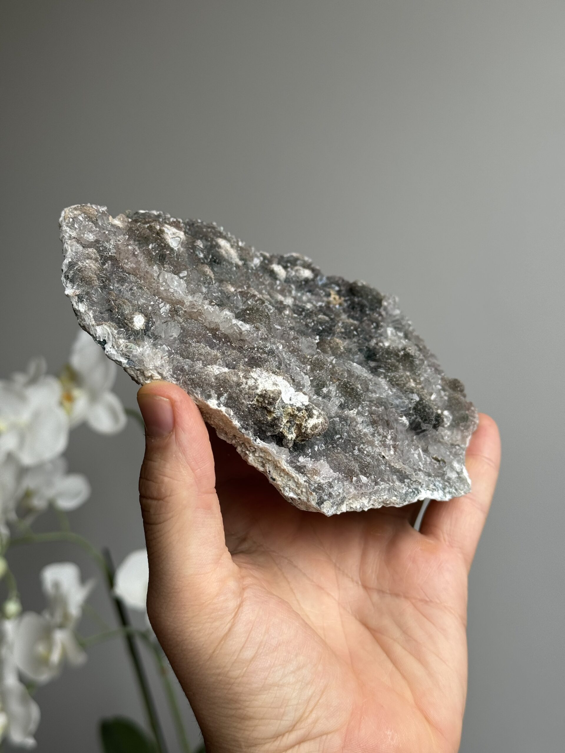 Een decoratief stuk dat zowel de diversiteit als de natuurlijke schoonheid van amethist en kwarts laat zien. Mooi om neer te zetten in huis of als toevoeging aan een edelstenen- en mineralencollectie.