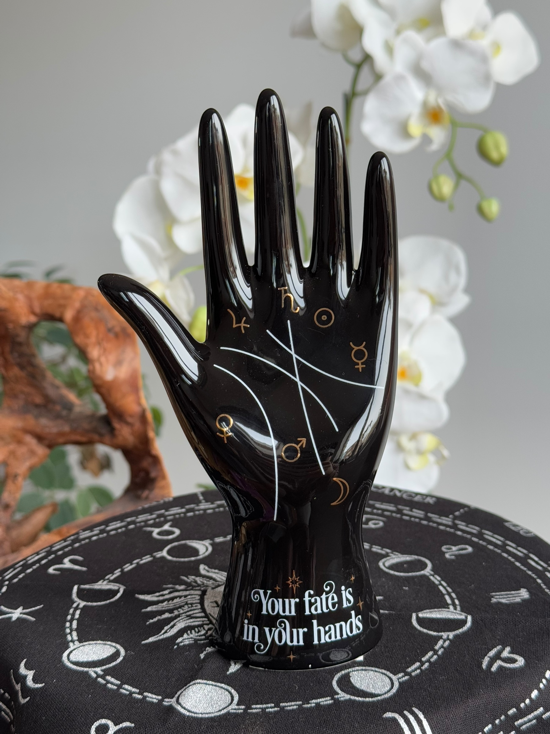 Voeg mystieke flair toe aan je altaar met ons stijlvolle Black Palmistry Ornament van keramiek. Deze prachtige hand, gedetailleerd met palmistische symbolen en lijnen, is perfect voor zowel decoratieve als spirituele doeleinden. Gemaakt van hoogwaardig materiaal en in een elegante zwarte afwerking, past dit ornament moeiteloos bij elke spirituele ruimte.