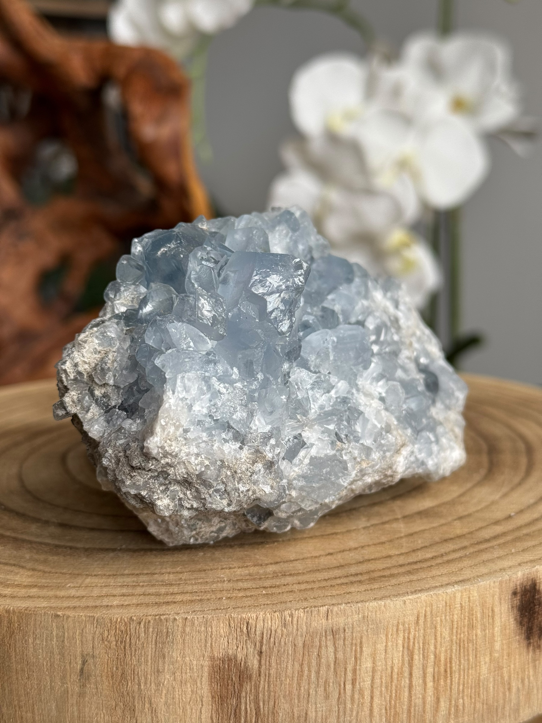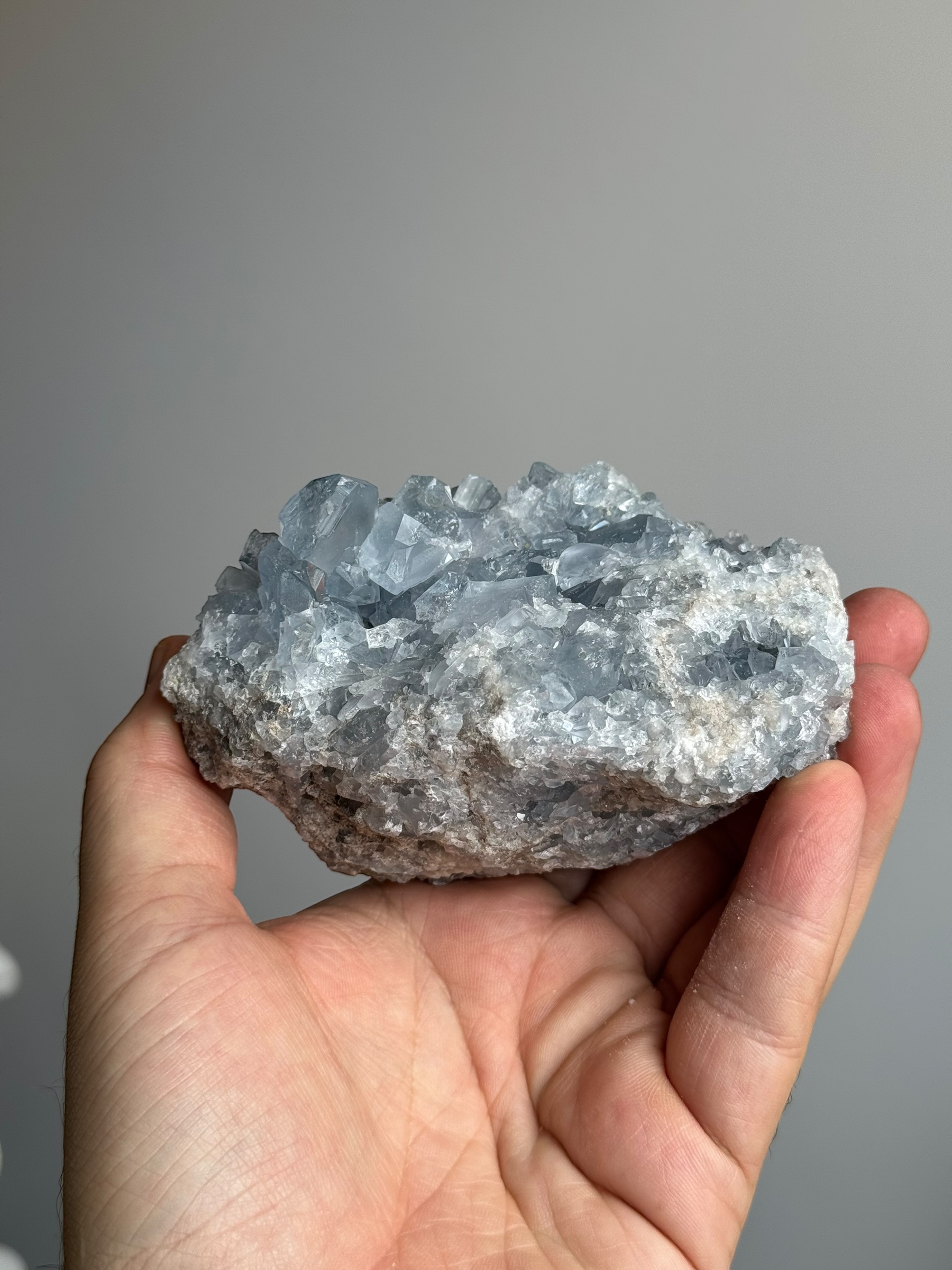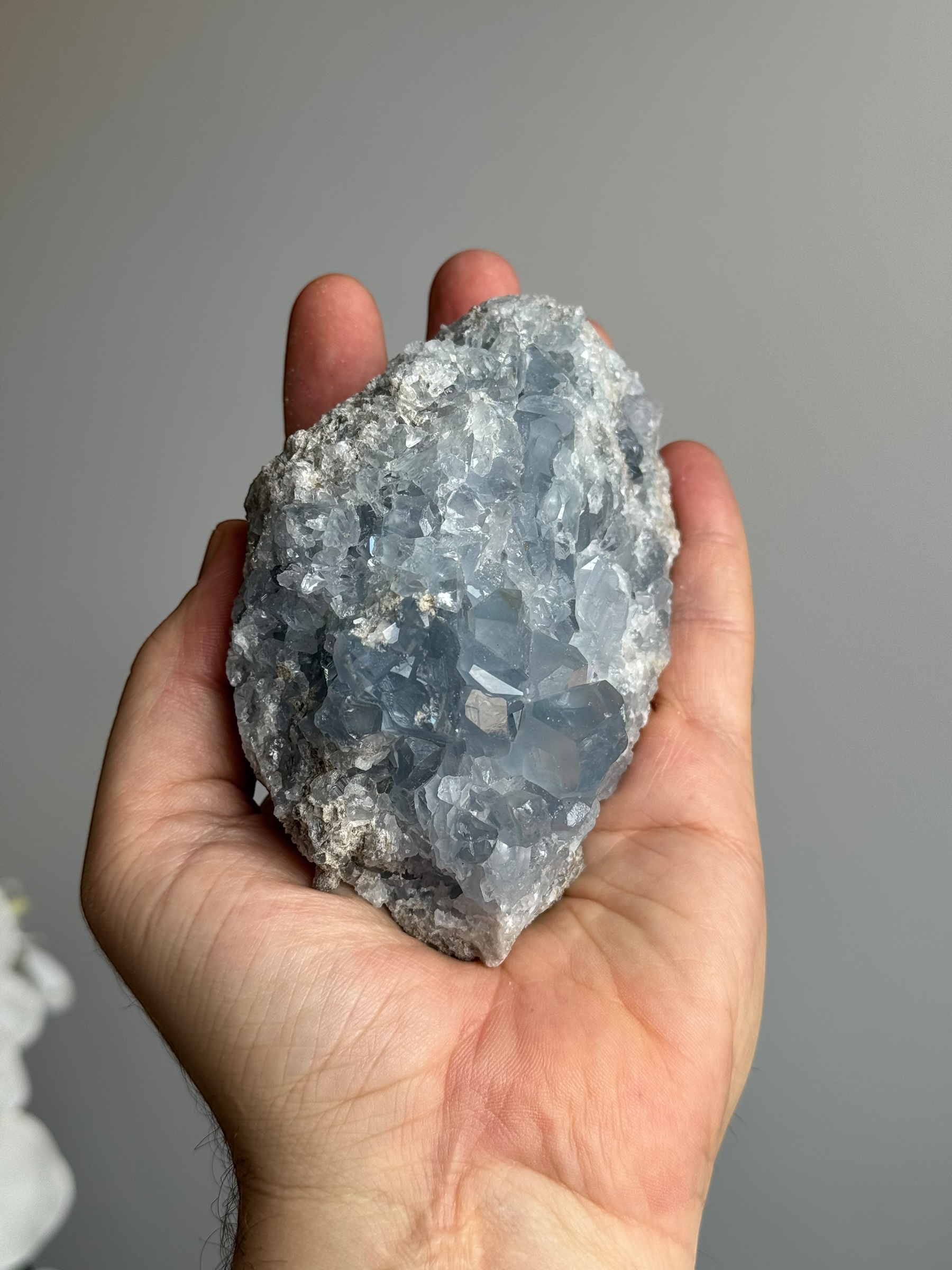 Celestien is over het algemeen kwetsbaar vanwege het moedergesteente. Het is normaal dat kristallen licht los kunnen zitten en dat er wat gruis van de steen afkomt tijdens het uitpakken en neerzetten.