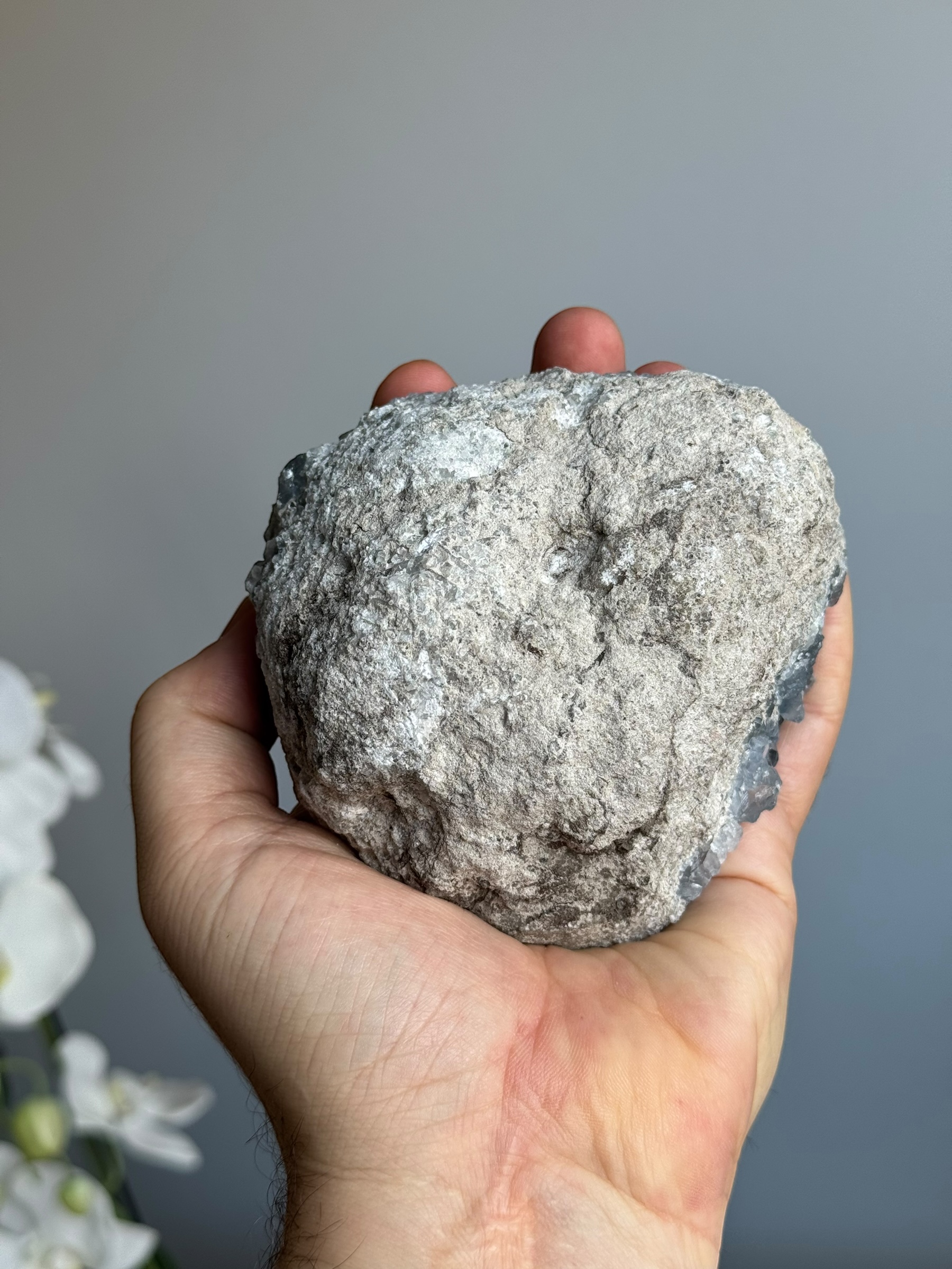 Celestien is over het algemeen kwetsbaar vanwege het moedergesteente. Het is normaal dat kristallen licht los kunnen zitten en dat er wat gruis van de steen afkomt tijdens het uitpakken en neerzetten.