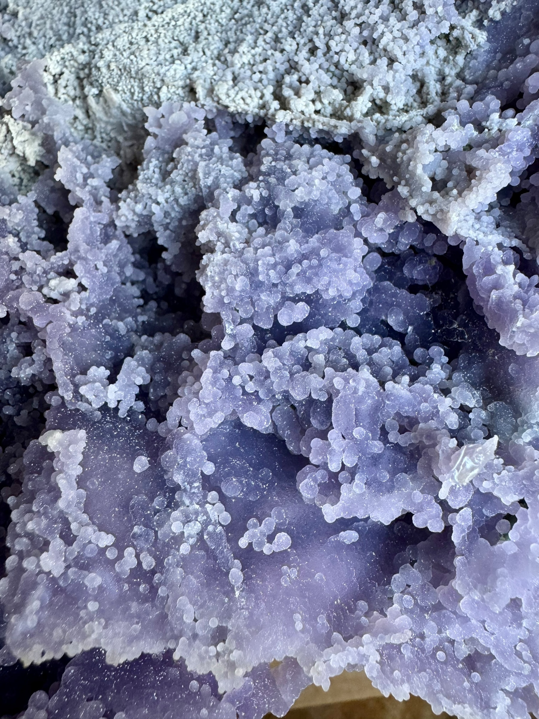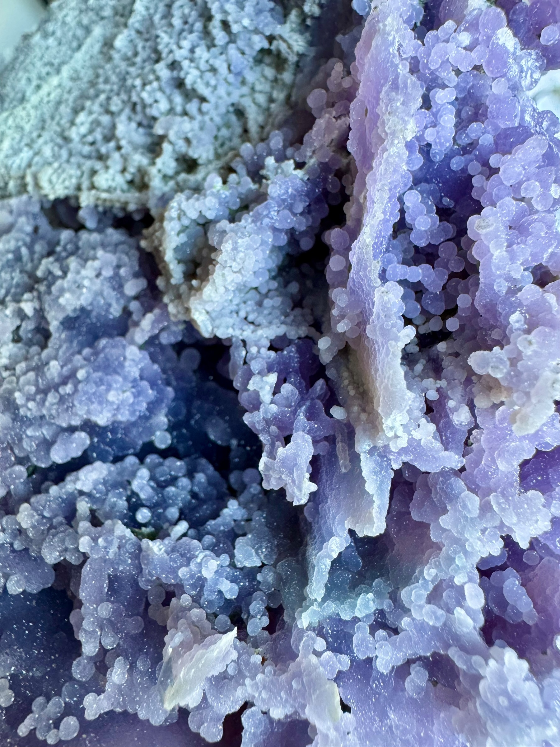 Onze druifagaat is afkomstig uit Indonesië, een van de weinige plaatsen waar deze unieke vorm van chalcedoon gevonden wordt. De prachtige paarse kleur en de schitterende druzy-oppervlakken maken deze steen niet alleen uniek, maar ook een echte eyecatcher voor je collectie.