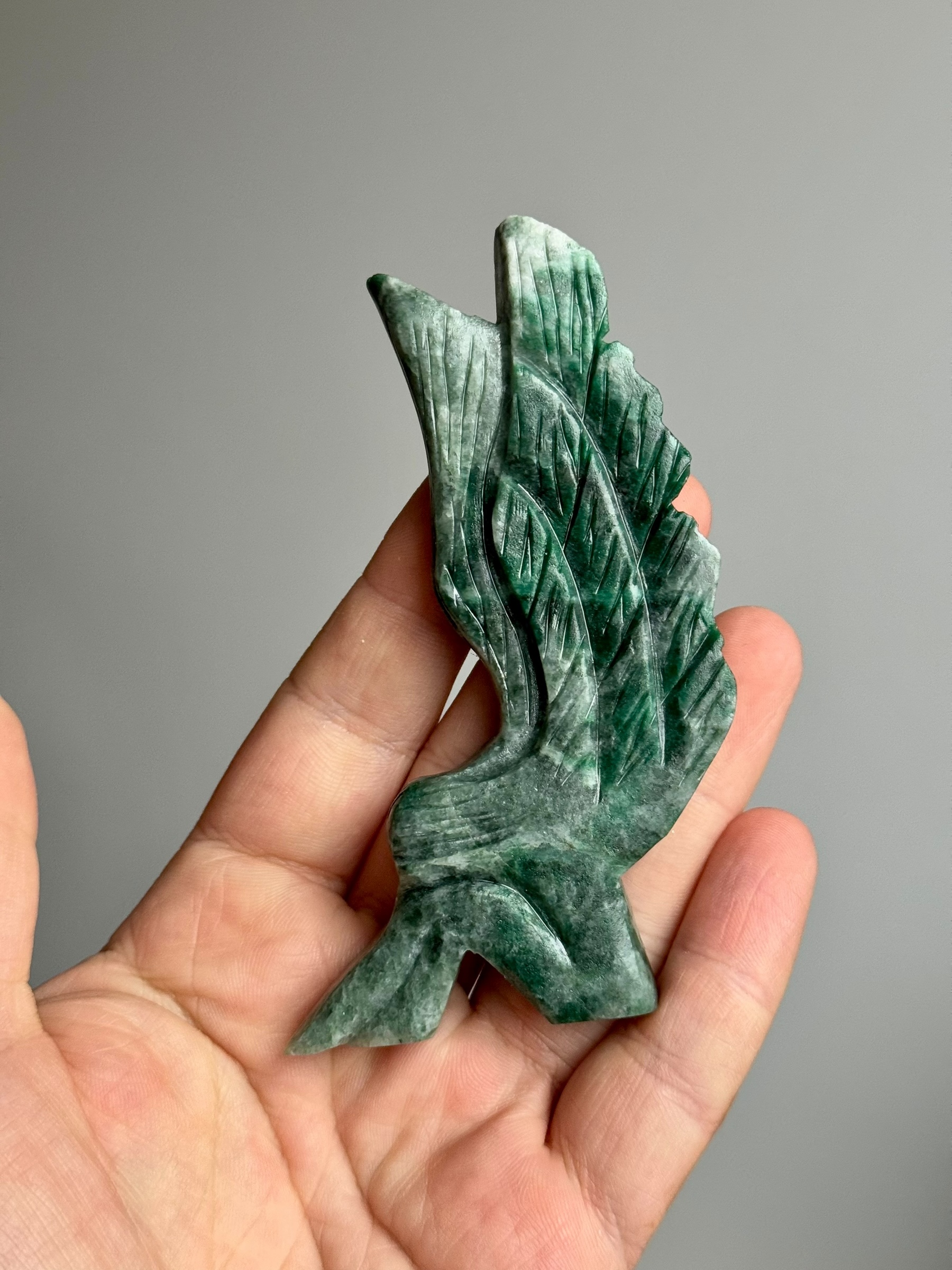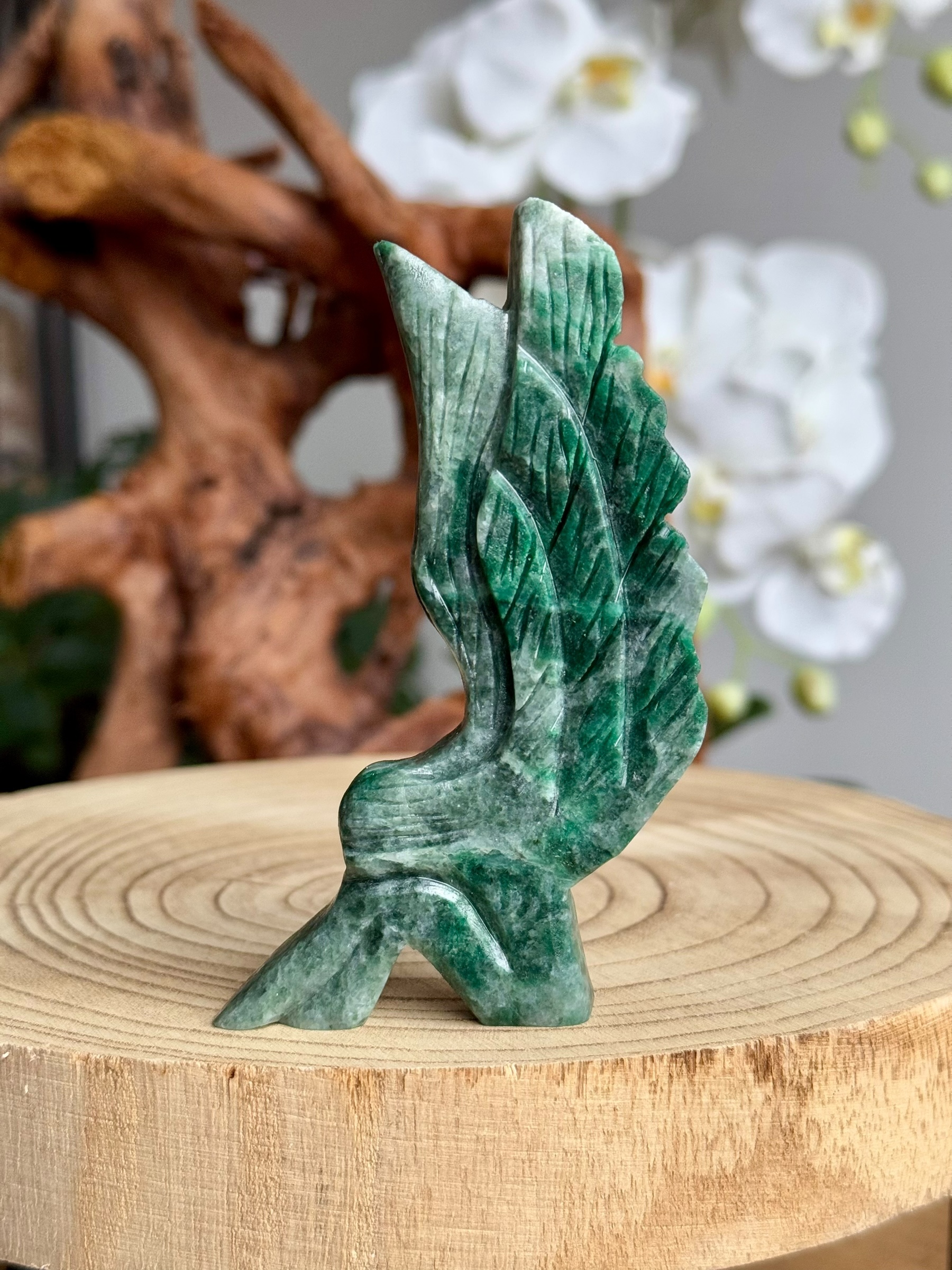 Deze bijzondere groene aventurijn engel toont een moment van emotionele verwerking, met haar hoofd huilend op haar knieën gesteund. Deze afbeelding symboliseert de acceptatie van verdriet als een belangrijk onderdeel van het verwerkingsproces en herinnert ons eraan dat er kracht en veerkracht is om door te zetten in zware tijden.