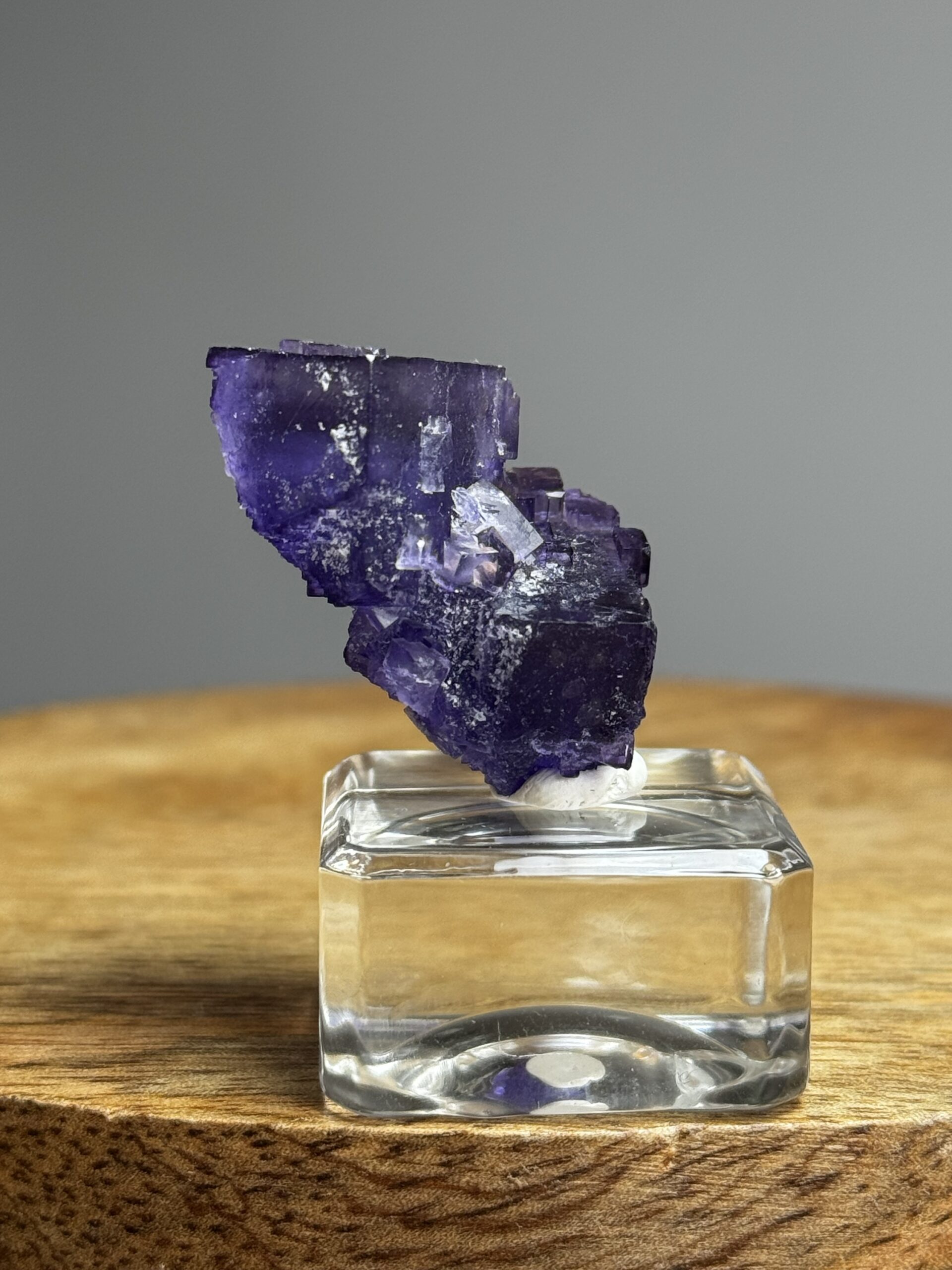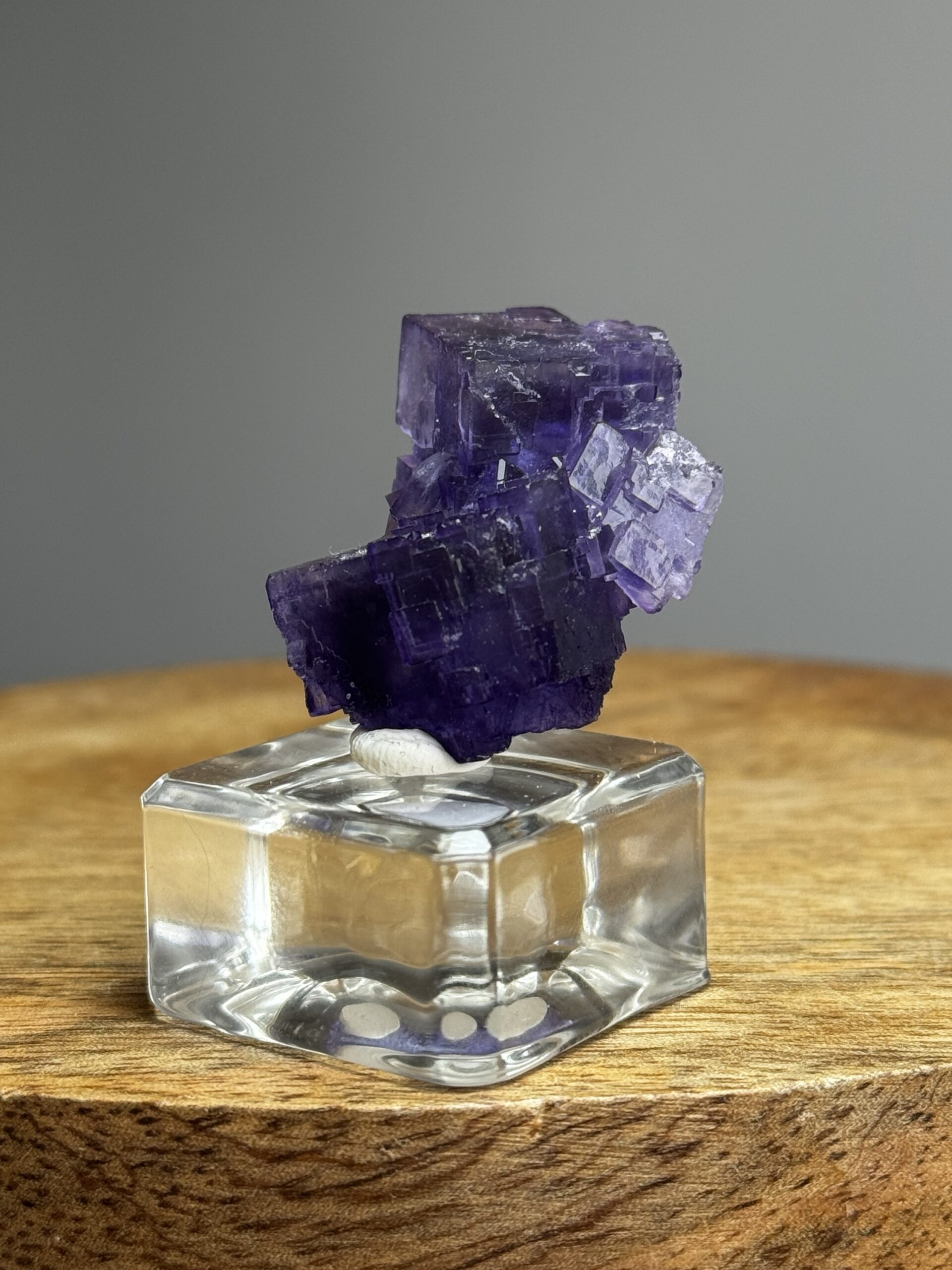 Uniek stukje paarse fluoriet uit Akesu, Xinjiang. Dit is een bekende vindplaats in China die geliefd is bij verzamelaars vanwege de intens paarse kleur en glasachtige glans.