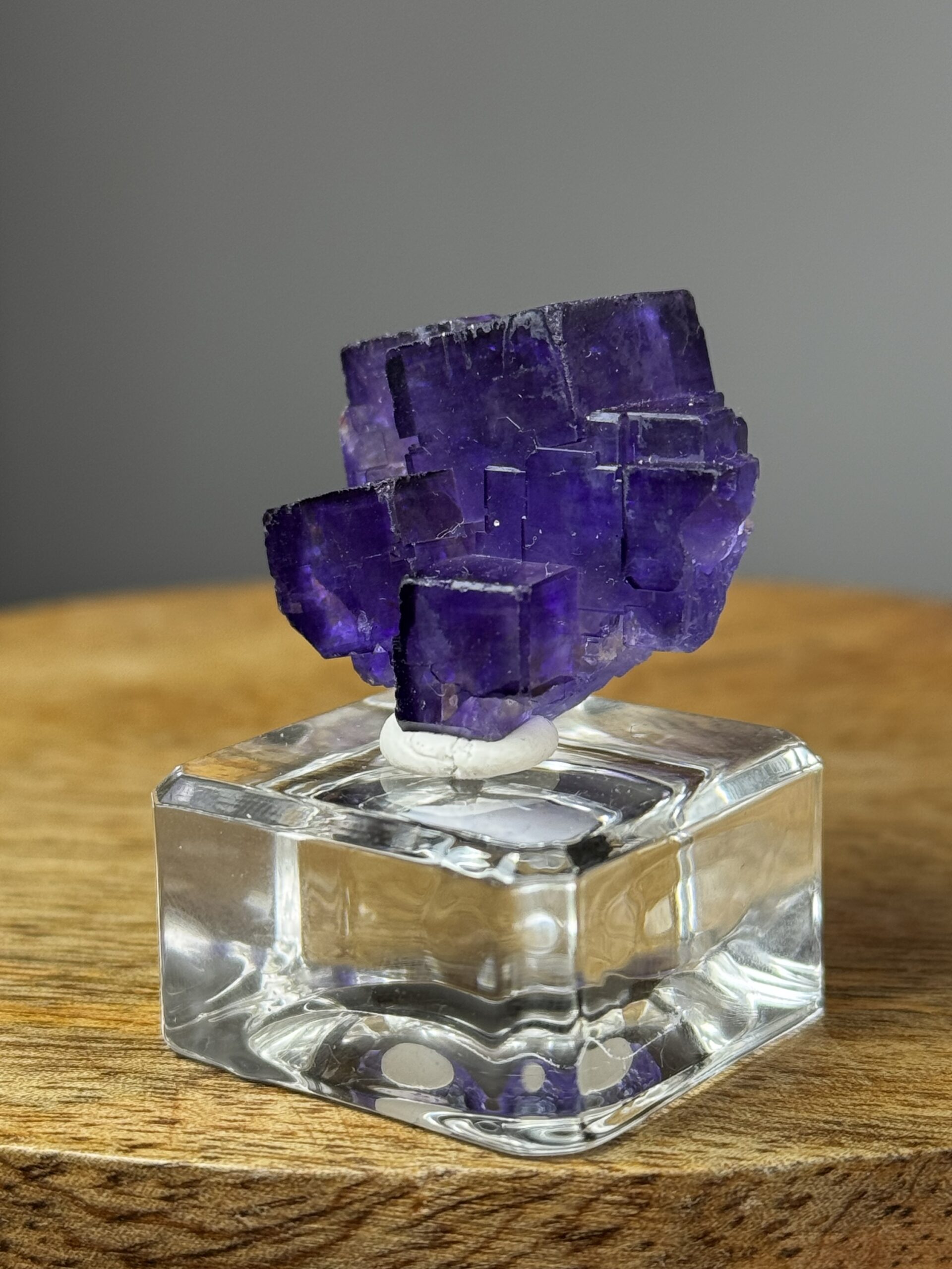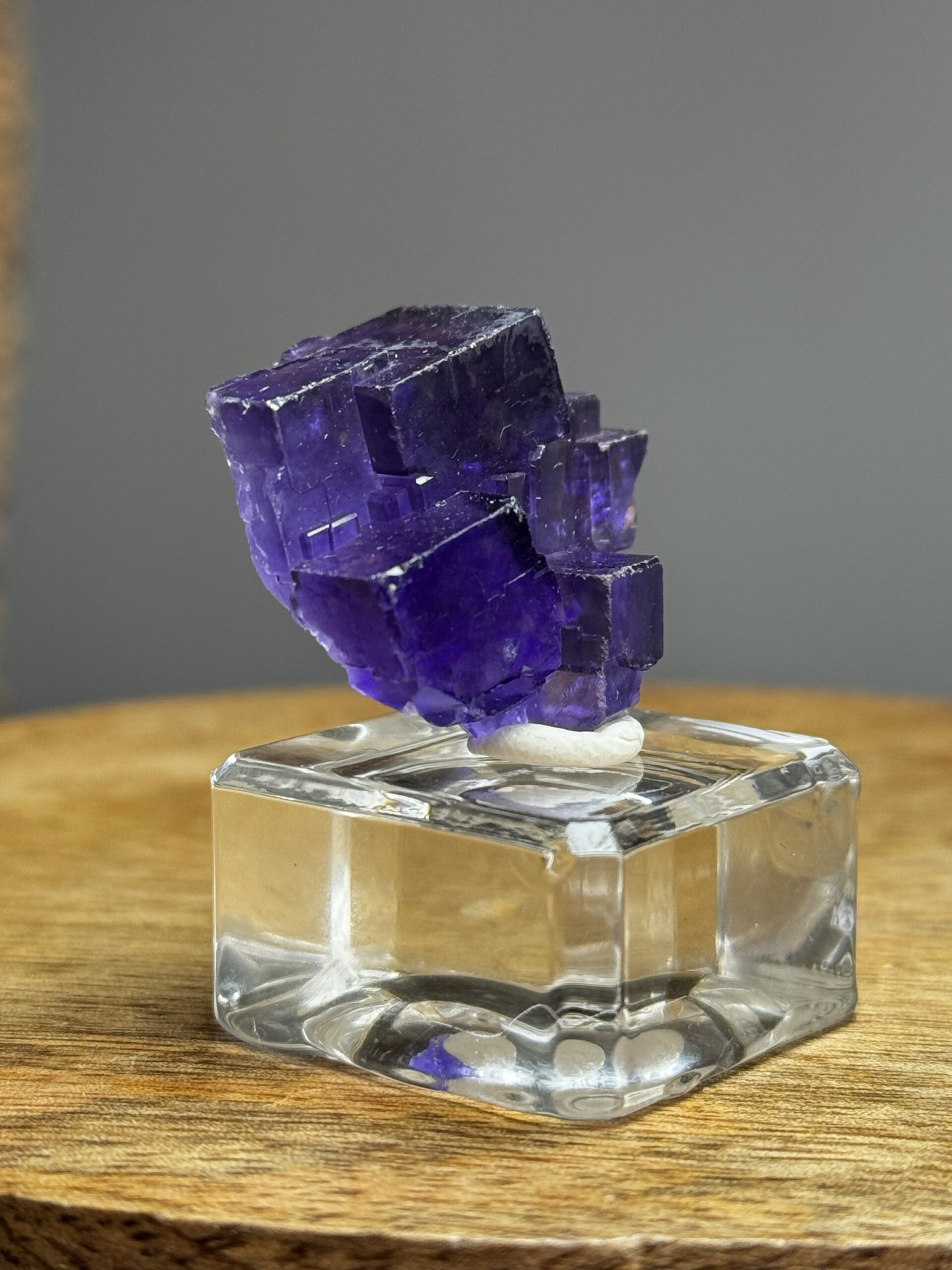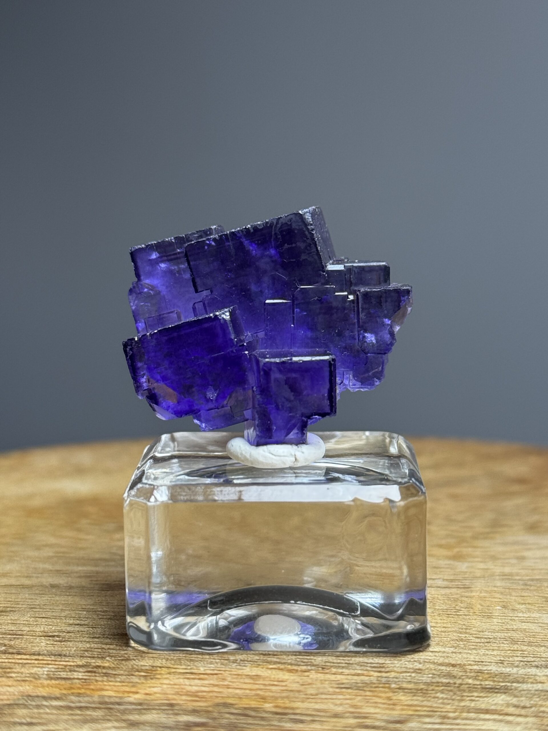 Uniek stukje paarse fluoriet uit Akesu, Xinjiang. Dit is een bekende vindplaats in China die geliefd is bij verzamelaars vanwege de intens paarse kleur en glasachtige glans.