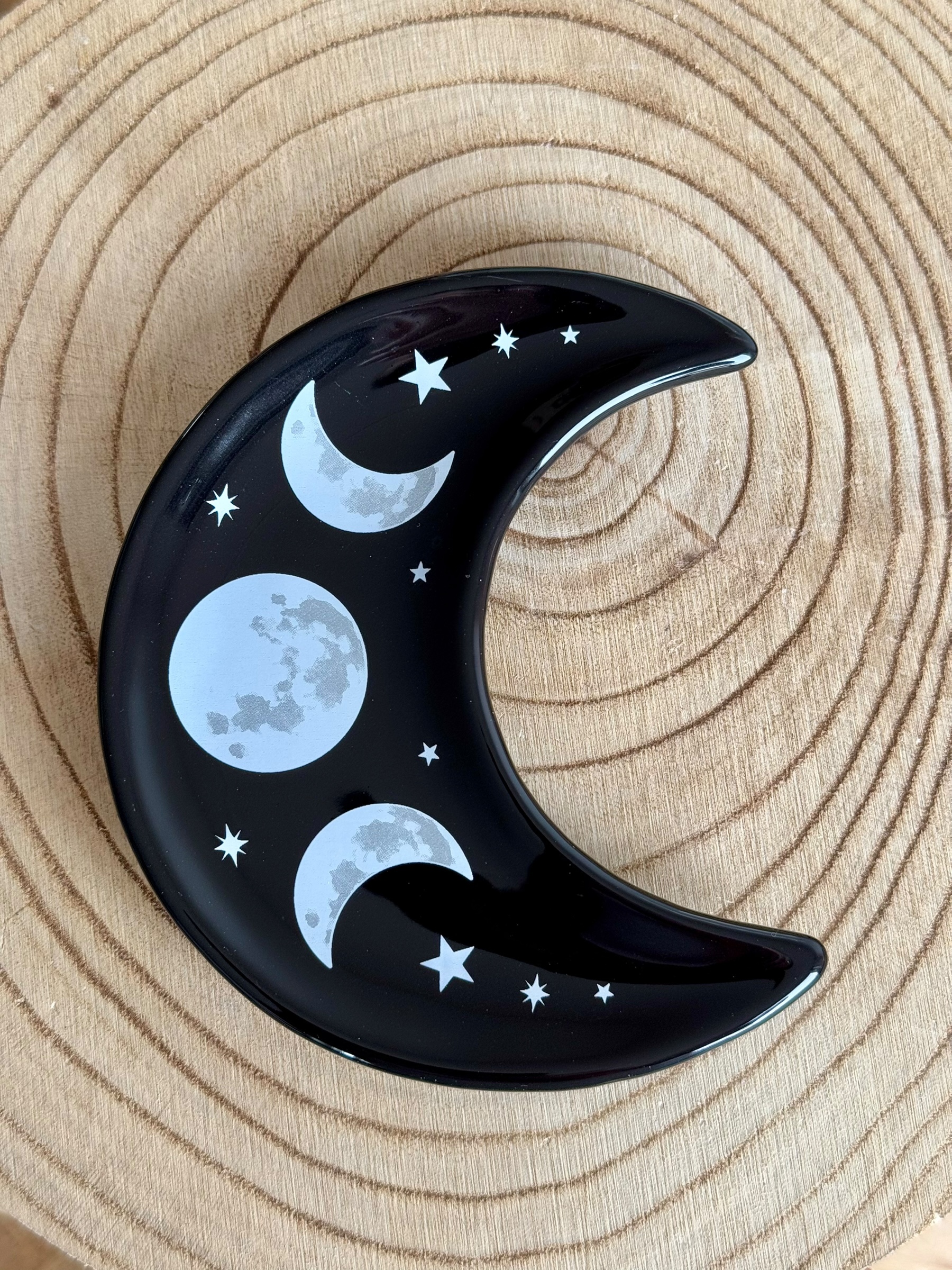 Voeg een vleugje mystiek toe aan je altaar of woonruimte met ons prachtige maanvormige schaaltje, versierd met het Triple Moon-symbool. Dit unieke schaaltje is perfect voor het bewaren van edelstenen, sieraden of andere kleine magische voorwerpen.