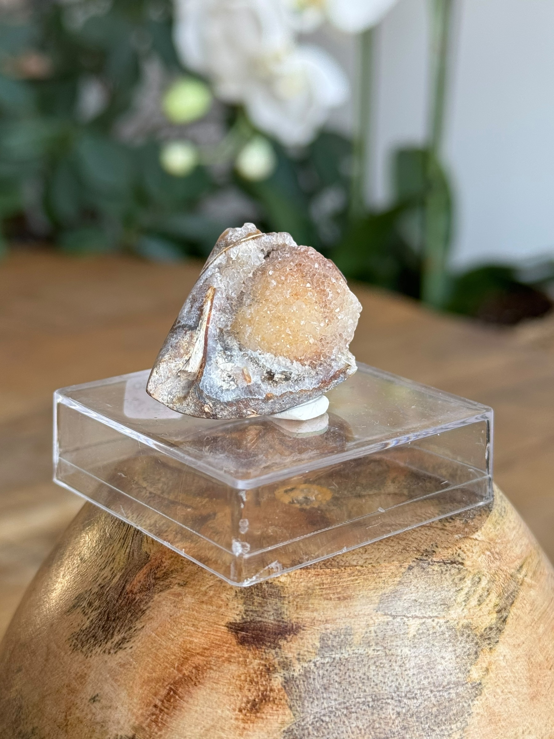 Ontdek de tijdloze schoonheid van deze unieke kwarts schelp uit India. Deze schelpen zijn tussen de 50 en 100 miljoen jaar oud en stammen af uit de krijttijd, waardoor ze niet alleen fascinerende decoratieve objecten zijn, maar ook waardevolle stukjes geschiedenis.