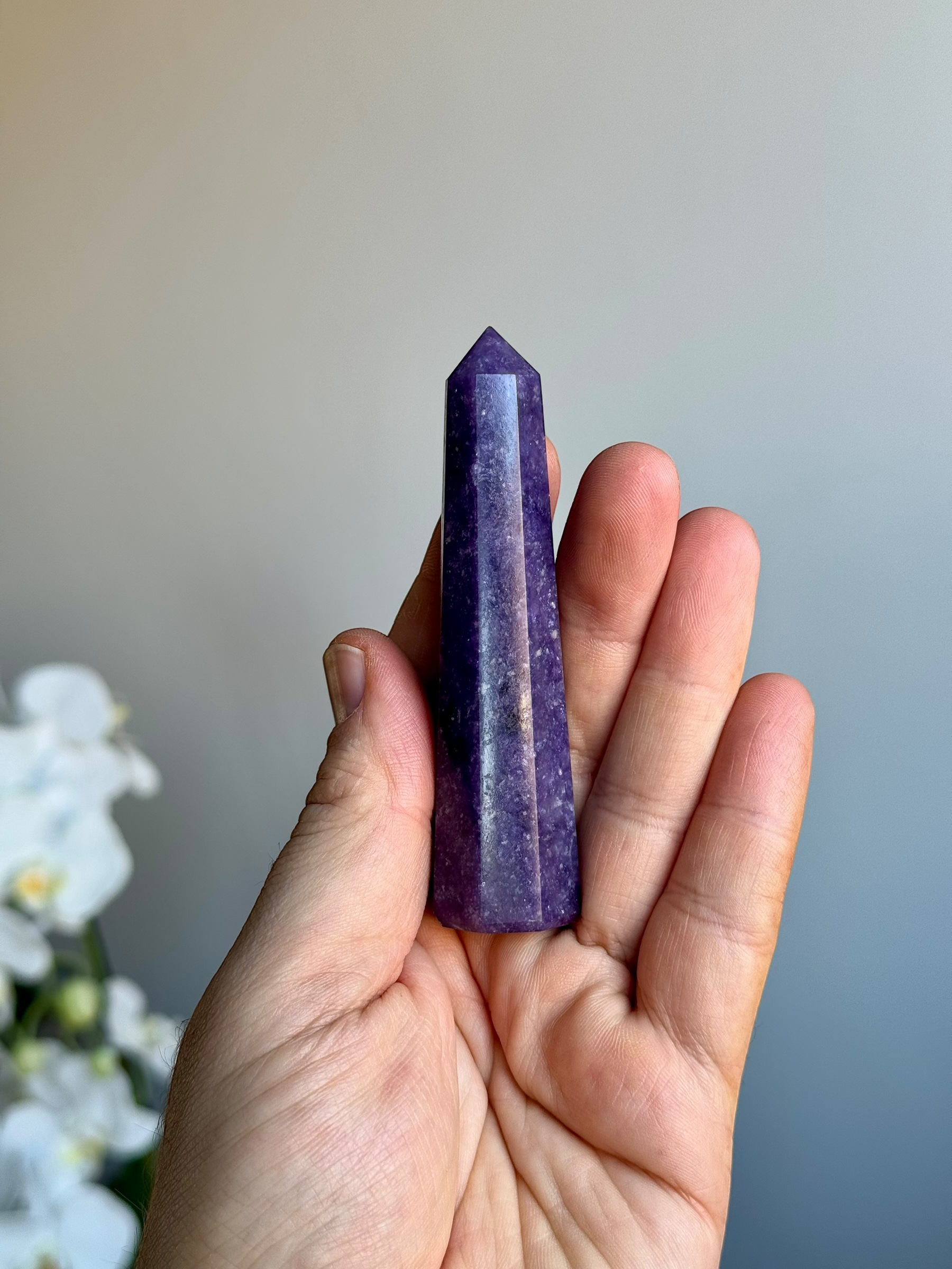 Deze prachtige donkere lepidoliet komt uit India en is een echt juweel voor je collectie. Deze Lepidoliet toren heeft een diepe, rijke kleur die een gevoel van sereniteit en elegantie uitstraalt.