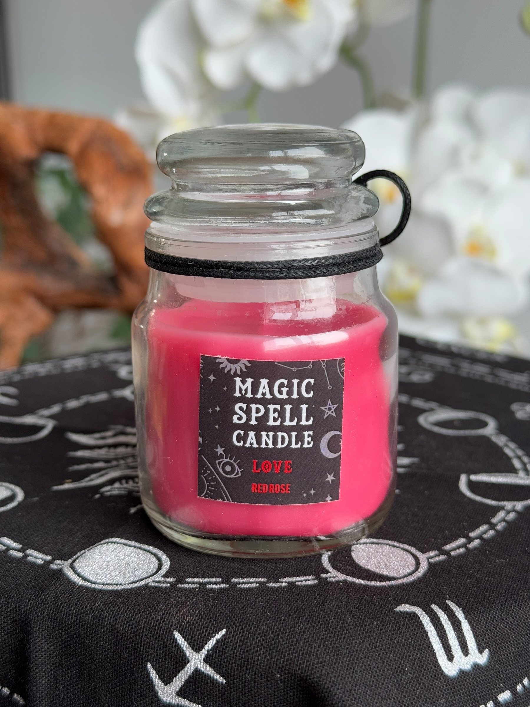 Onze Magic Spell kaarsen hebben heerlijke geuren die je zintuigen prikkelen en een magische sfeer creëren. Gebruik de Magic Spell kaars tijdens je rituelen en meditaties om je intenties te versterken en een betoverende ambiance te scheppen. Steek de kaars aan, focus op je wensen en laat de magische energie en geur je omarmen. De glazen pot zorgt ervoor dat de kaars veilig brandt en voegt een vleugje elegantie toe aan je altaar of woonruimte.
