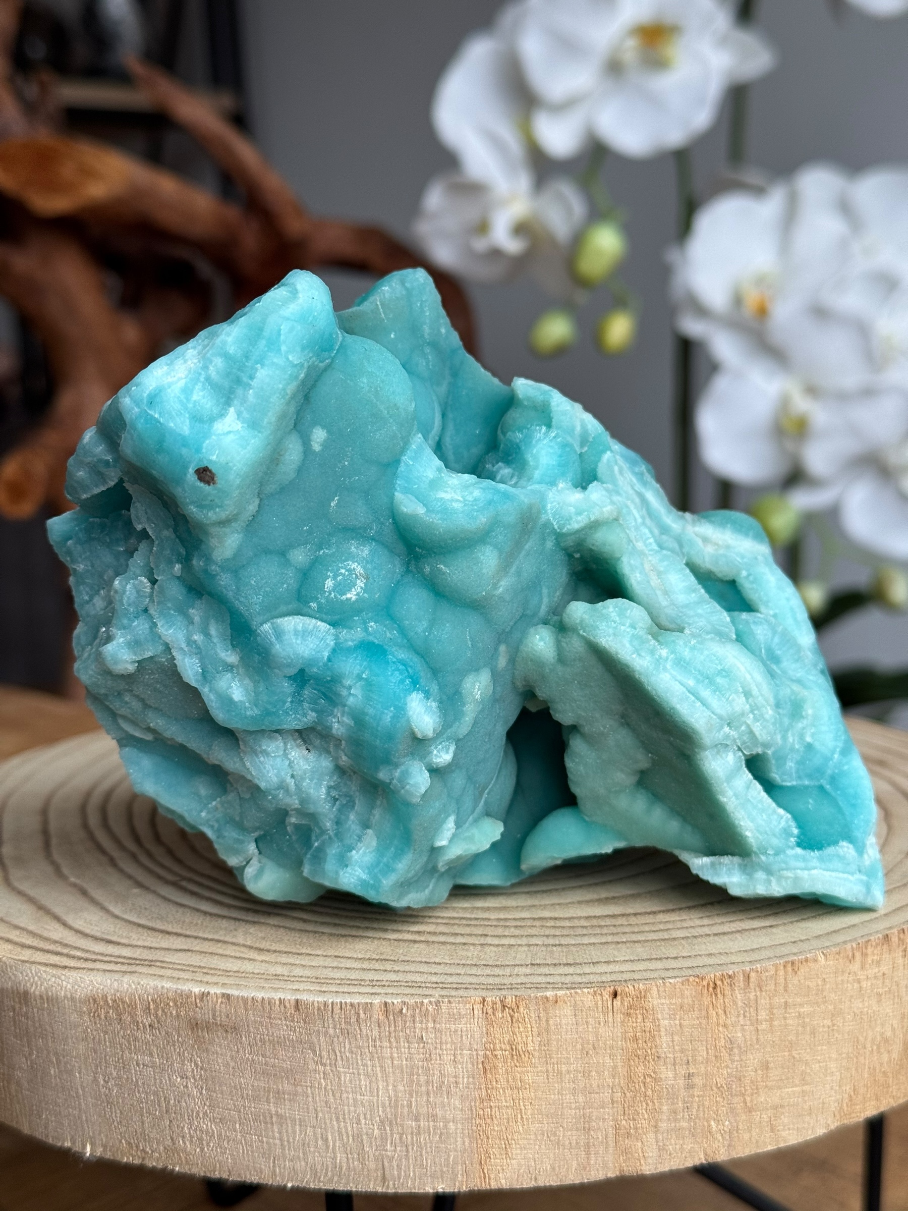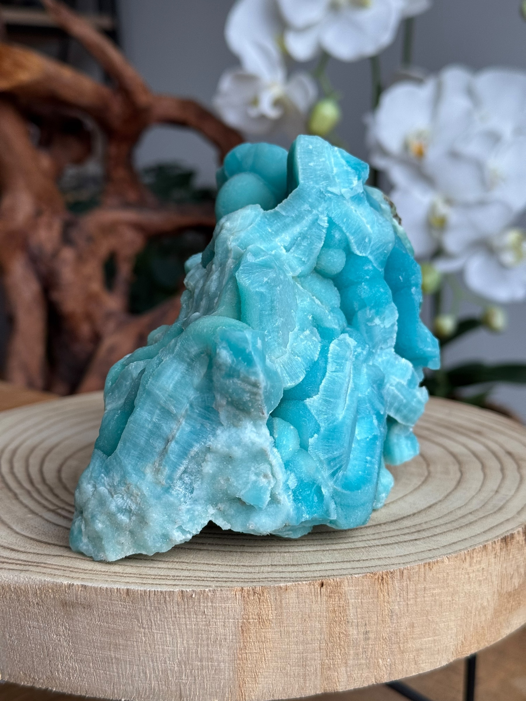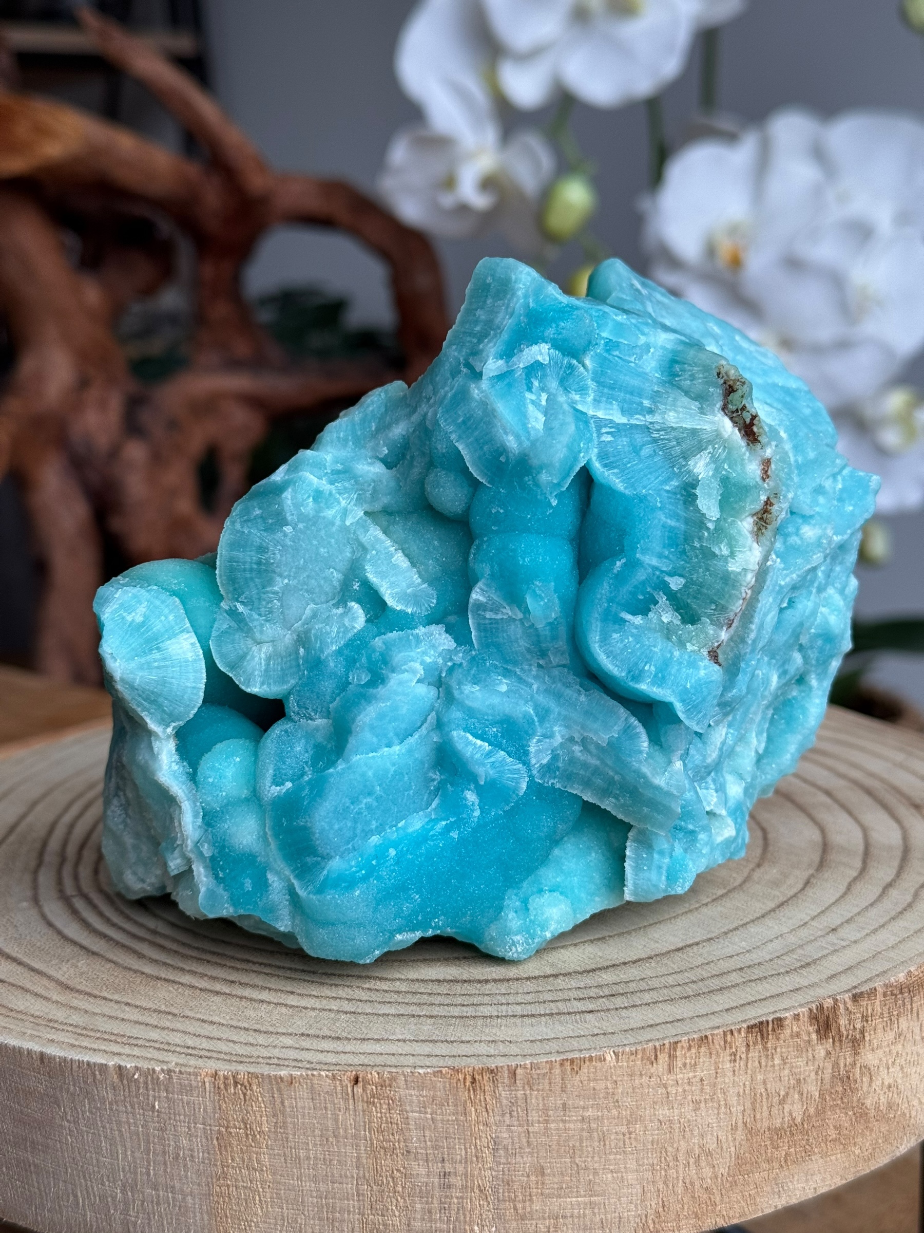 Deze prachtige Aragoniet uit Afghanistan is een echte blikvanger in elke collectie. Met zijn schitterende blauwe kleur en de prachtige druzy kristalletjes, straalt deze steen pure schoonheid uit. De stukken zijn van uitzonderlijke kwaliteit en zullen zeker opvallen door hun levendige kleur en delicate kristalstructuren.
