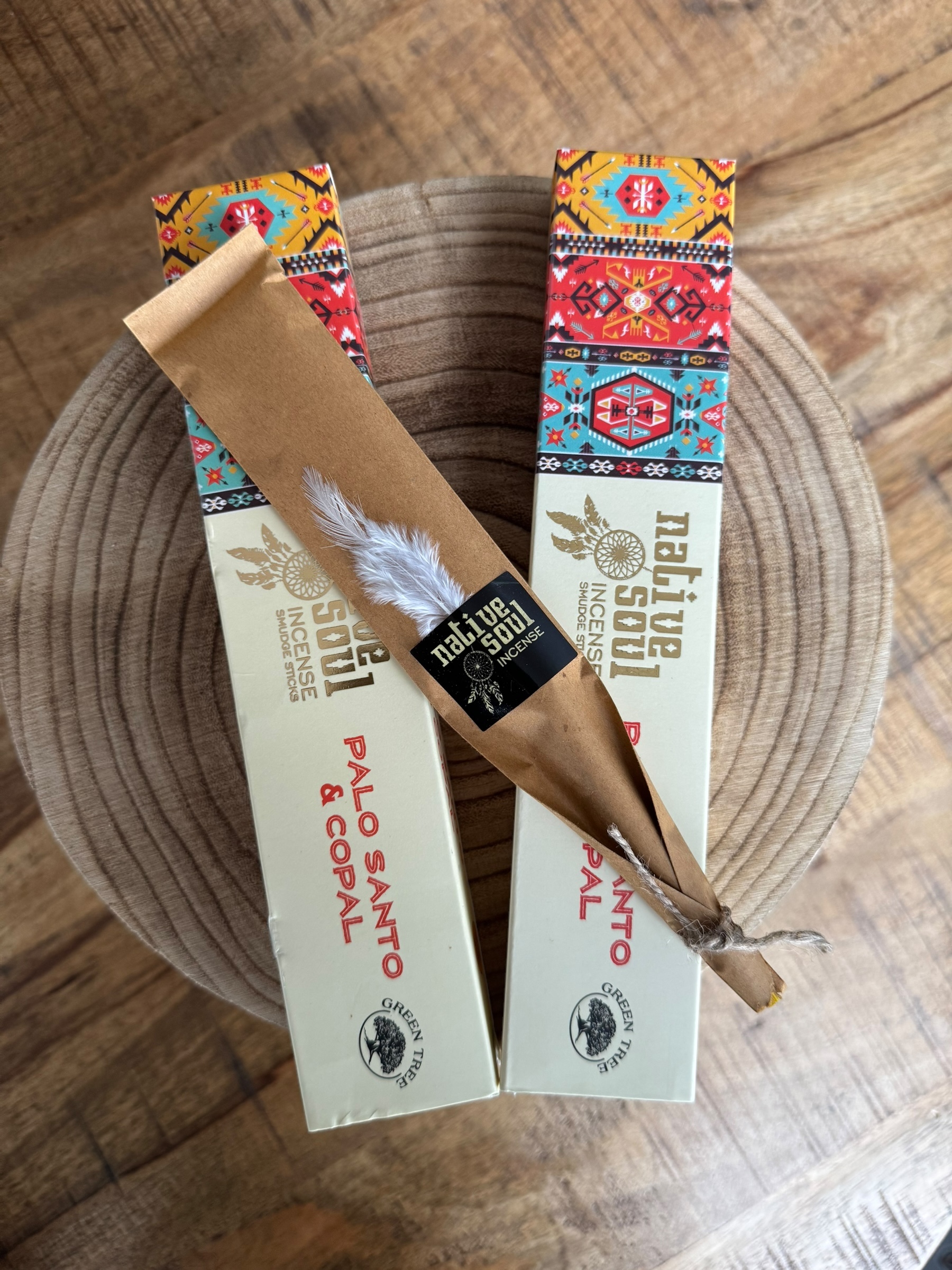 Ervaar de zuiverende kracht van Native Soul Wierook in de variant “Palo Santo en Copal”. Deze zorgvuldig samengestelde wierookstokjes combineren de heilige aroma’s van Palo Santo, bekend om zijn reinigende en beschermende eigenschappen, met de warme, harsachtige geur van Copal. Samen creëren deze geuren een harmonieuze en rustgevende atmosfeer, perfect voor meditatie, yoga, en spirituele reiniging.