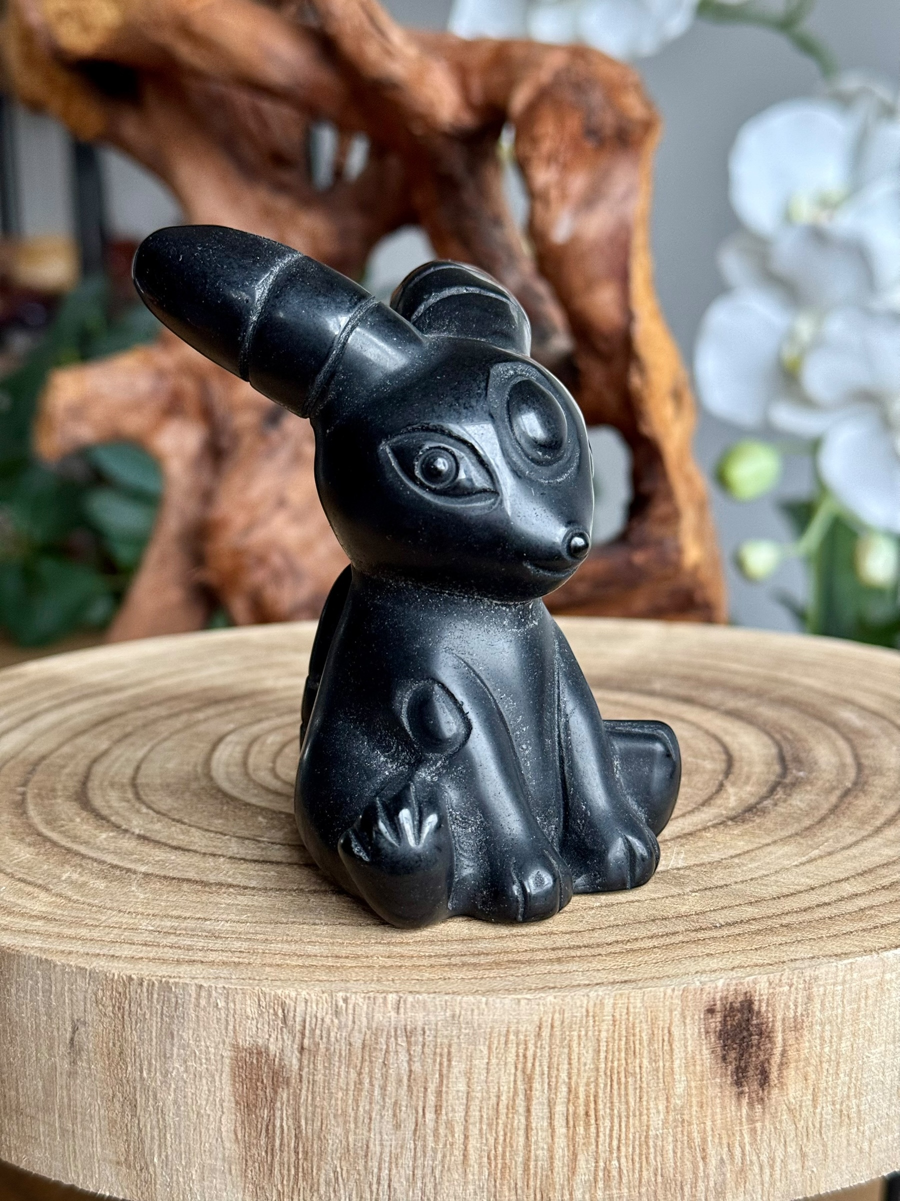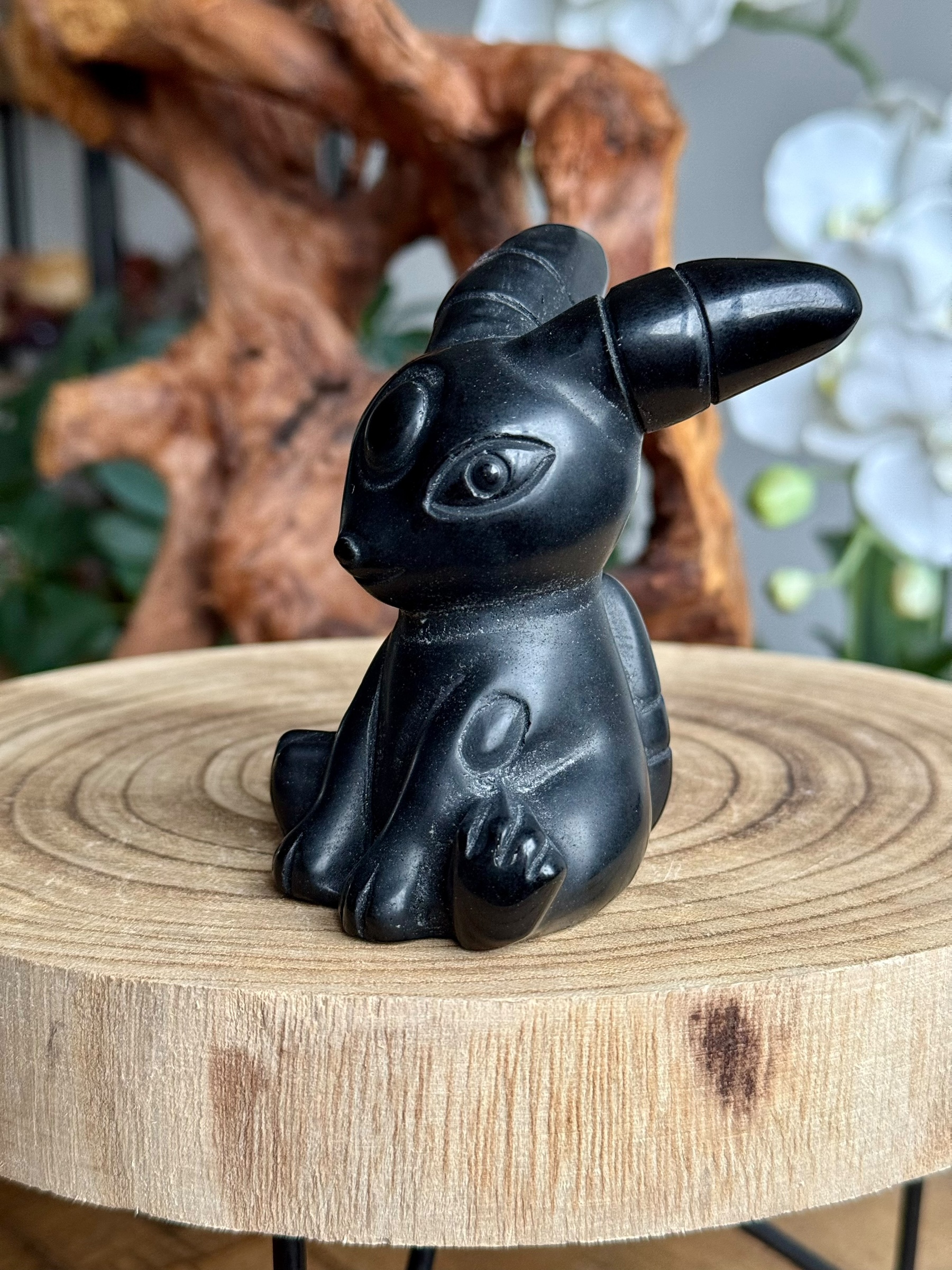Pokémon, wie kent ze niet? Deze bijzondere Umbreon is zorgvuldig vervaardigd uit zwarte obsidiaan. Deze beroemde Nacht-evolutie Pokémon heeft niet alleen de iconische uitstraling van Umbreon, maar draagt ook de krachtige energie van obsidiaan bij zich. Met zijn diepe zwarte kleur en heldere lijnen is dit beeld een magisch stukje kunst voor iedere verzameling. Hij zoekt nog een nieuwe trainer om zich bij aan te sluiten!